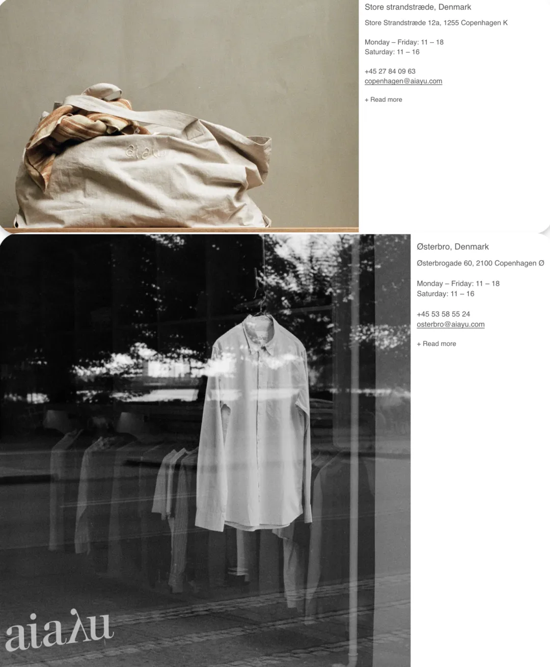 2017年Aiayu第一家旗舰店在Copenhagen的Store Strandstræde开设,现在增开了Østerbro街区的品牌店铺
