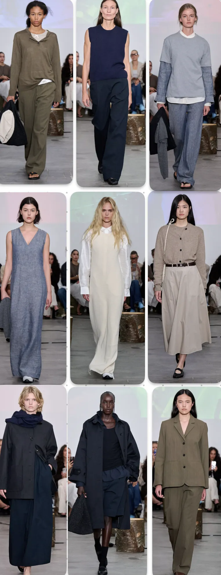 有机棉和亚麻面料应用最广,外套夹克和衬衫、上衣这几个主要品类中都是以两个植物面料为主,从2025FW到今年SS和FW哥本哈根时装周走秀都很常见,下文会提及