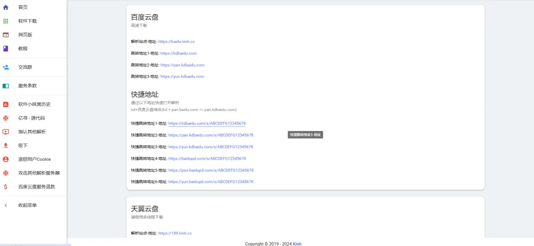 解析站点-地址:https://baidu.kinh.cc跳转地址1-地址:https://kdbaidu.com跳转地址2-地址:https://pan.kdbaidu.com跳转地址3-地址:https://yun.kdbaidu.comKinhDown官网:https://kinhdown.com/