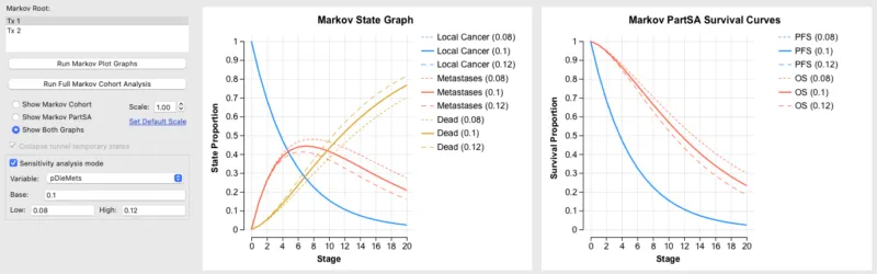 马尔可夫图与生存曲线图的敏感性分析模式