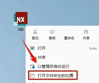 26.回到桌面右键选择”NX“,然后点击”打开文件所在位置“;