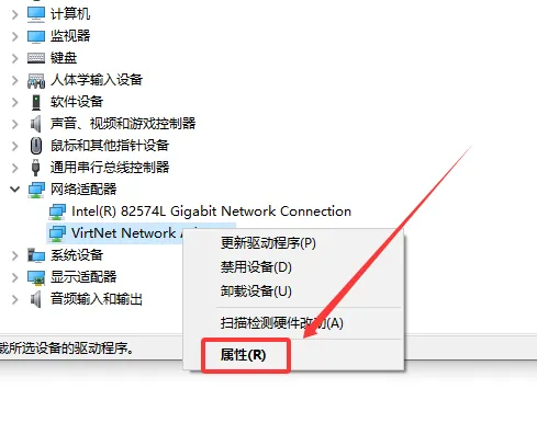 32.找到 VirtNet Network Adapter,点击鼠标右键,选择属性