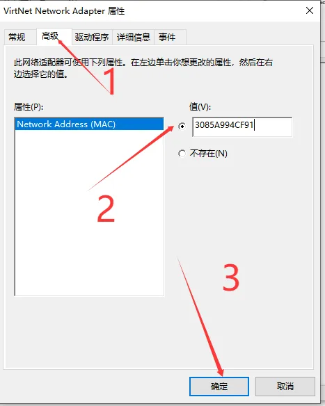 33.点击高级,选择值,然后输入 3085A994CF91,点击确定