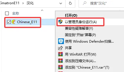 35.找到汉化文件夹内的Chinese_E11 点击鼠标右键,选择以管理员身份运行