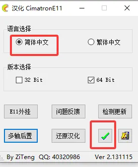 36.点击简体中文,选择系统对应的版本,然后点击 √。