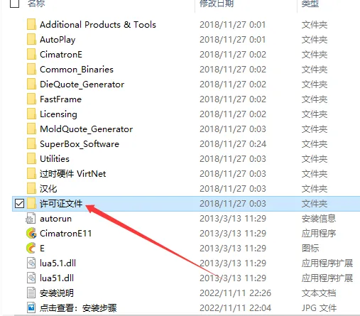 40.安装包内找到 许可证文件夹,鼠标双击打开