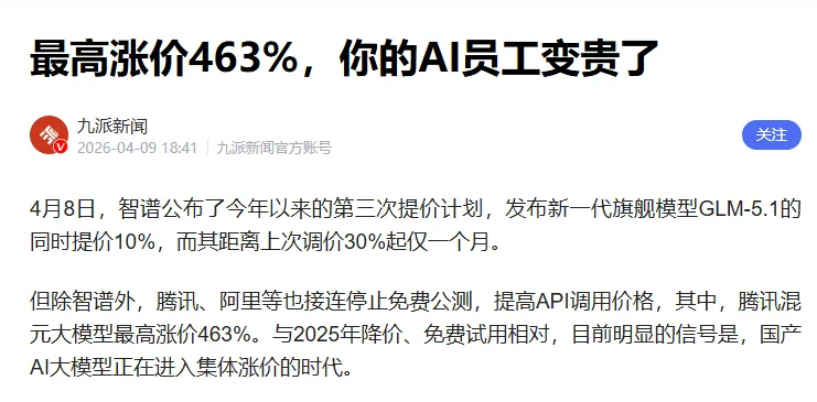 智谱一个月内两连涨、腾讯混元最高涨价463%、阿里等大厂接连关停免费公测……