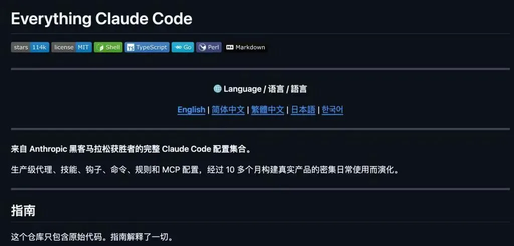 与 Superpowers 理念相似,Everything Claude Code 也是一个旨在提升 AI 编程专业度的项目,但其实现路径有所不同。该项目在不到两个月内便获得了超过 11 万 Star,增长迅猛。