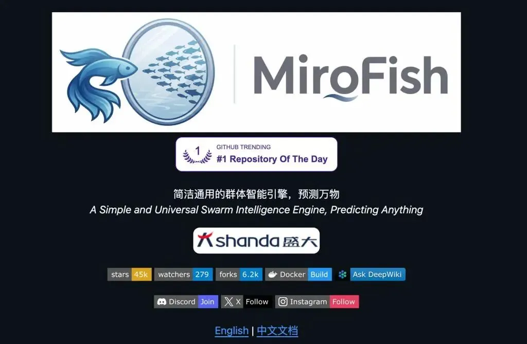 MiroFish 是一个基于多智能体系统的 AI 预测引擎,其口号是“预测万物”,目前拥有 4.4 万 Star。