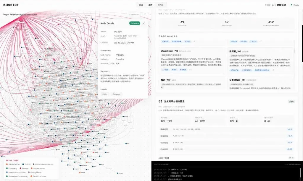 其使用方式颇具趣味性。用户上传一些种子材料(如一条新闻、一份政策草案或一段文本),然后用自然语言描述想要预测的场景。系统会自动构建一个平行的数字世界,其中包含成千上万个具备独立人格和长期记忆的 AI 智能体。
