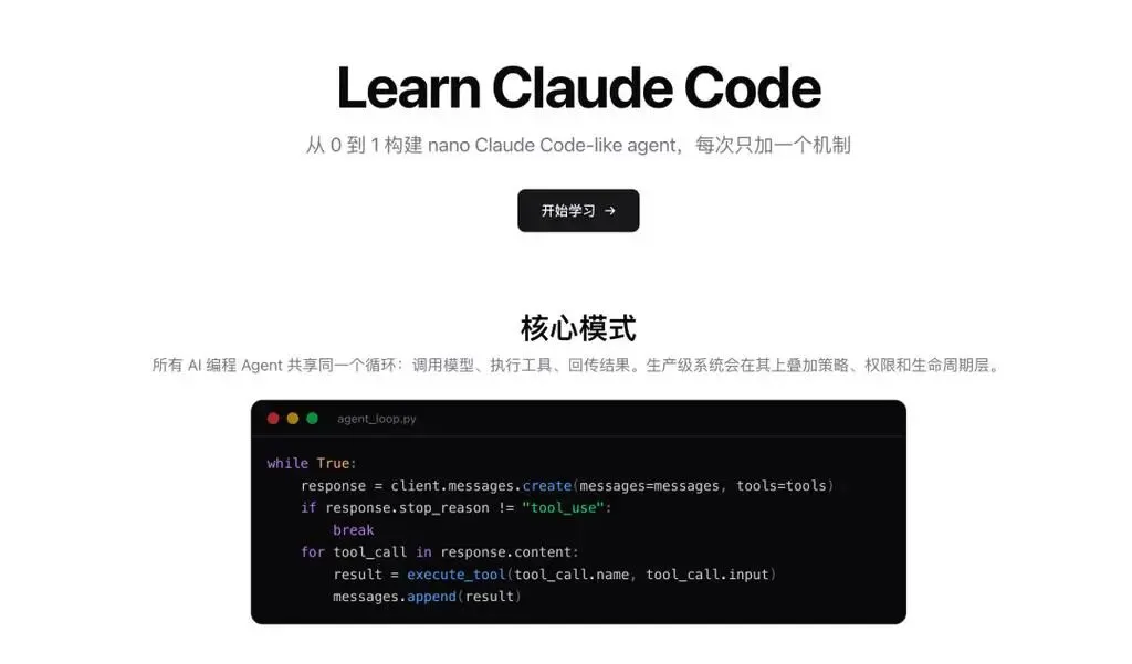 开源地址:https://github.com/shareAI-lab/learn-claude-code