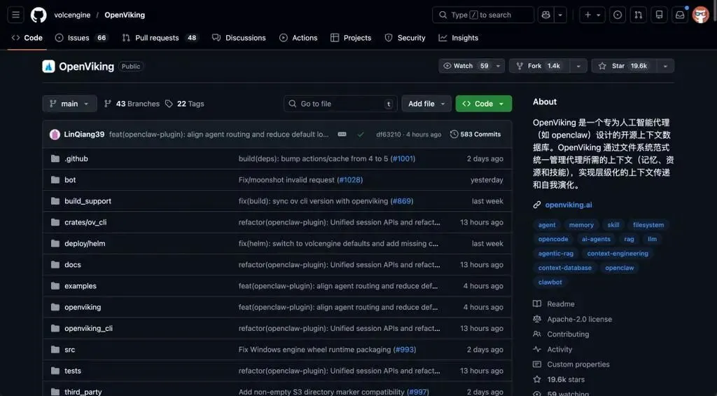 项目亮点:由火山引擎推出的、专为 AI Agent 设计的上下文数据库,旨在解决传统 RAG 系统中记忆碎片化的问题。