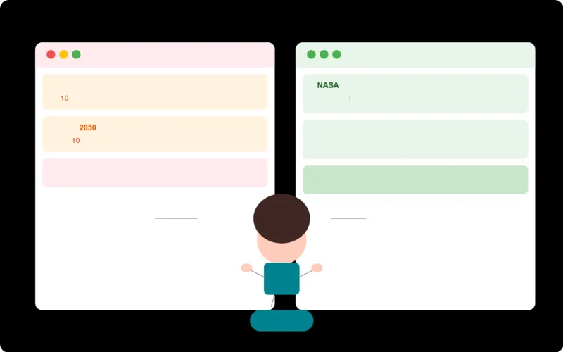 但妈妈提醒他:"你看这些标题都很夸张,你觉得靠谱吗?"于是小浩学乖了,往后翻了几页,找到了NASA官网的文章和几篇学术论文,发现——火星移民的难度远比那些"震惊体"文章描述的要大得多,真实的时间表可能是几十年甚至更久。