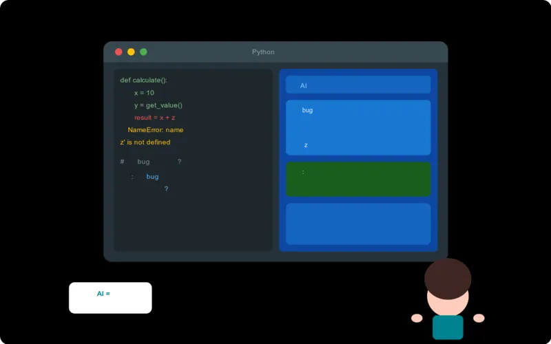 小文正在自学Python编程,遇到了一个bug(程序错误),看了半天也不知道哪里出了问题。于是他向AI助手求助。