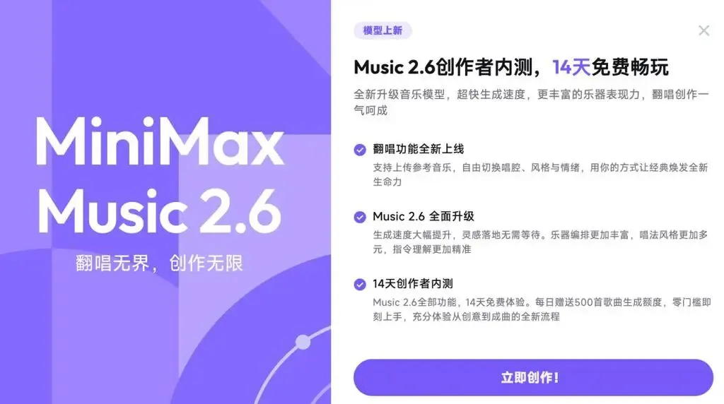 总体而言,Music 2.6标志着AI音乐进入了“可控创作”新阶段,在控制精度、响应速度和创作自由度上均有突破。