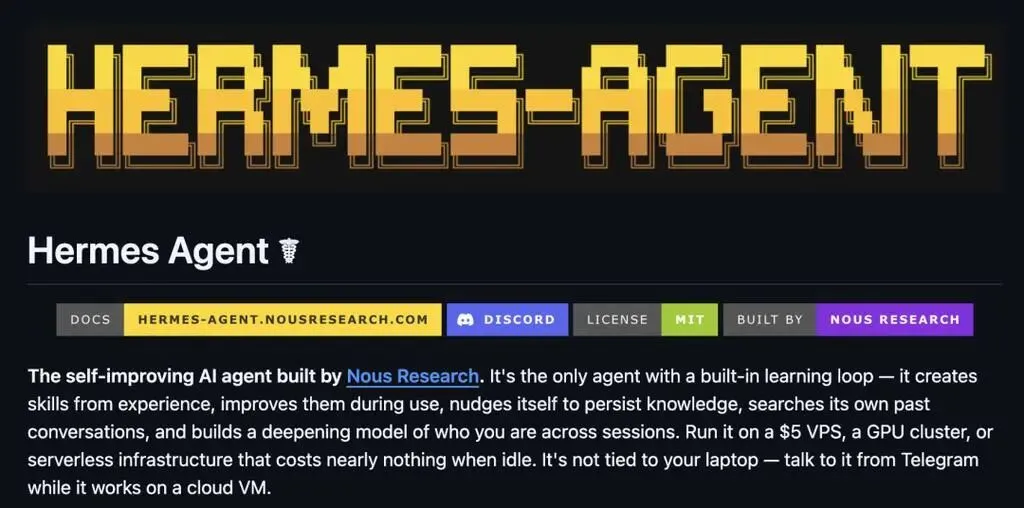 其二,是近期引爆开源社区的。由Nous Research推出的这款自主智能体,在GitHub上已迅速获得数万星标,其迭代速度甚至超越了多数商业产品。用户反馈显示,其体验的流畅度已促使许多人考虑替换原有的OpenClaw方案。