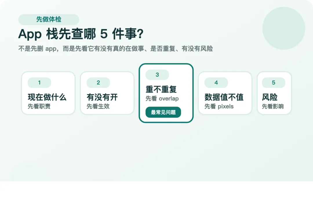 每一个还在付费、还在生效、还在采集数据的 app,你都知道它为什么存在。