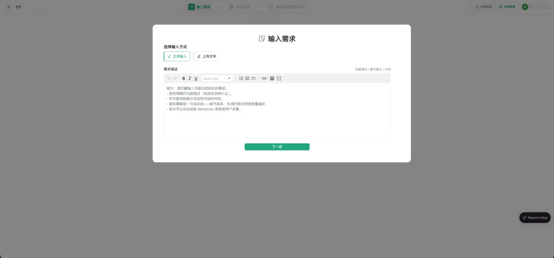 粘贴结构化文本、用户故事或功能说明