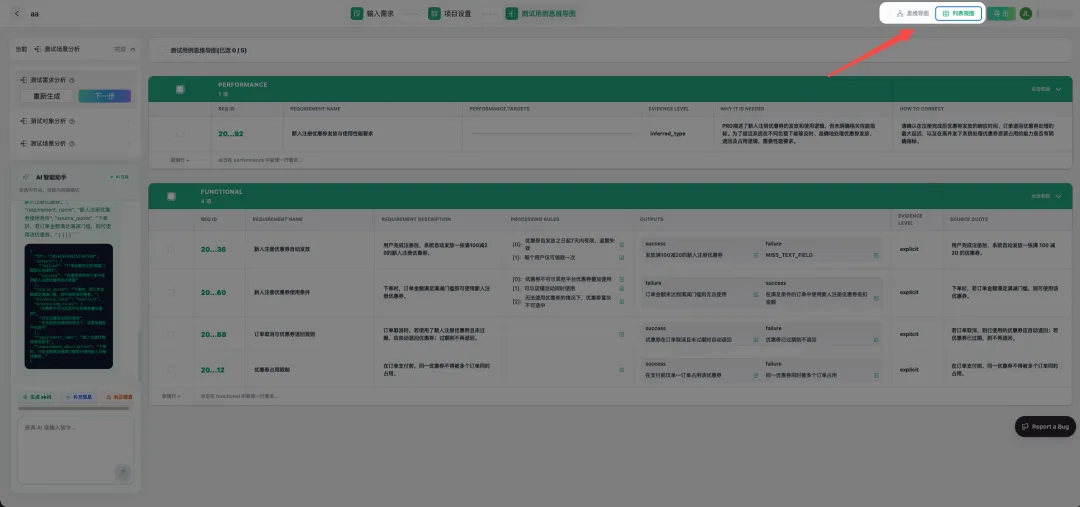 表格视图:适合批量浏览、筛选和管理测试设计内容
