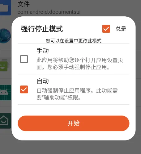 此应用使用辅助功能服务 API 自动执行强制停止功能。