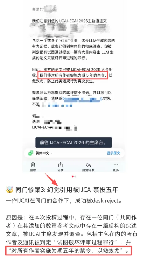 会议主席认为该投稿论文包含大量由 LLM生成的内容,并试图影响评审流程。最终处理结果十分严厉:论文未送外审被直接 desk reject,所有作者被实施5年禁投。