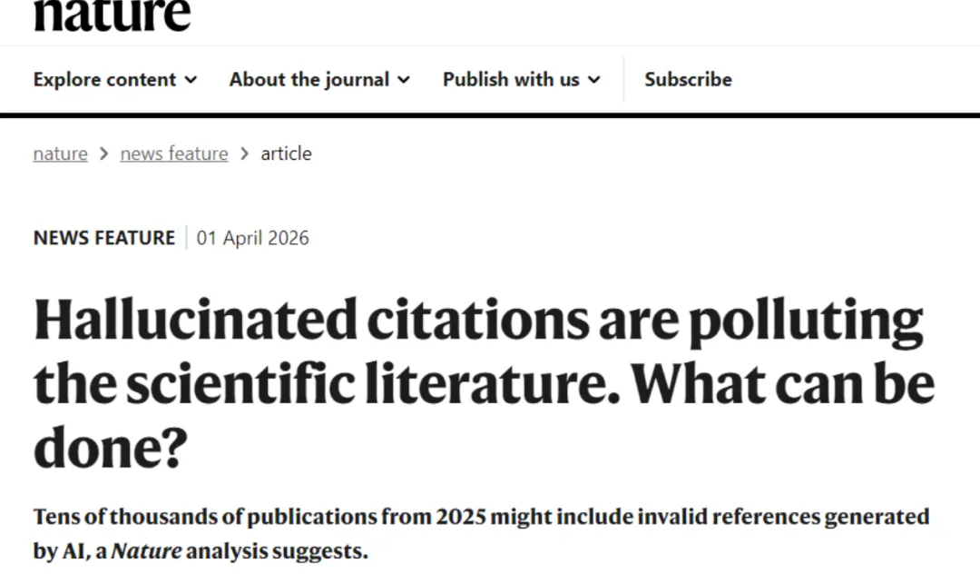 同样的,一项由《自然》新闻团队与英国公司Grounded AI在2026年4月1日联合发布的分析揭示,在2025年发表的约700万篇学术出版物中,可能有超过11万篇包含至少一个由AI“幻想”生成的无效参考文献