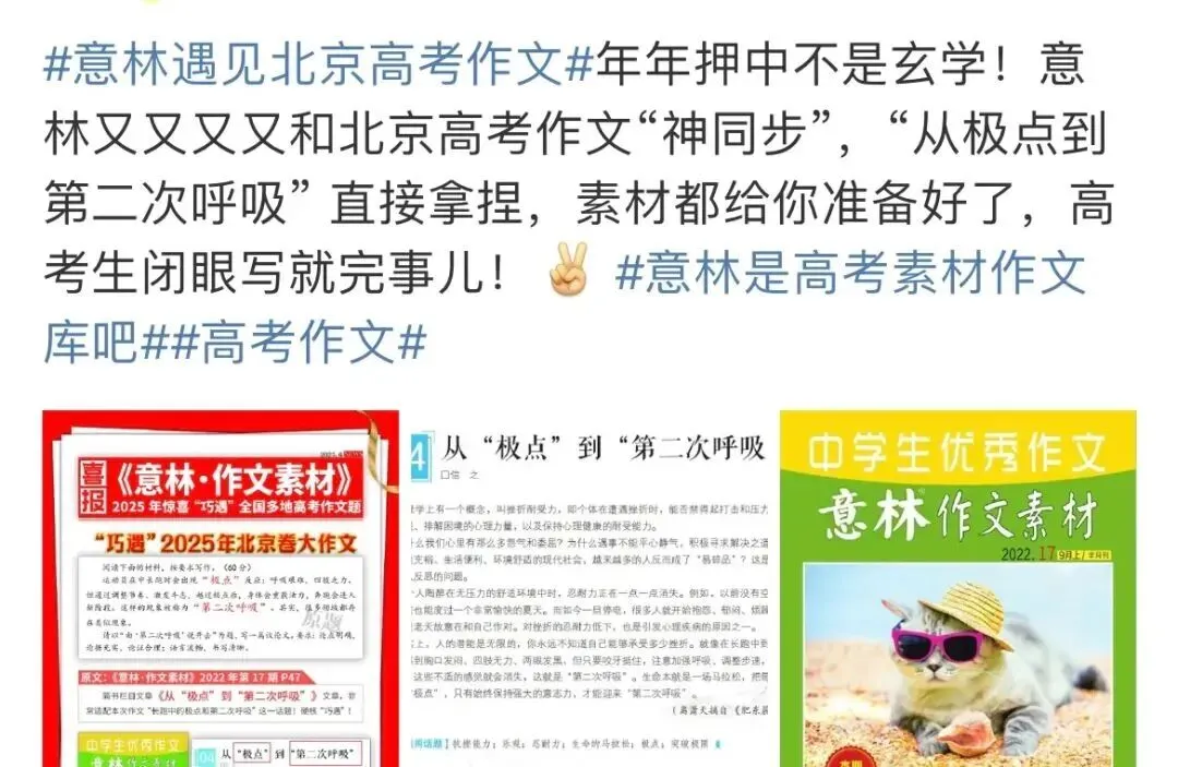 更厉害的是,它还连续10年硬核击中中高考作文题。