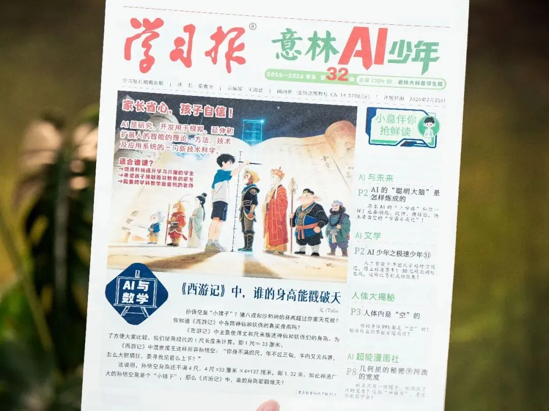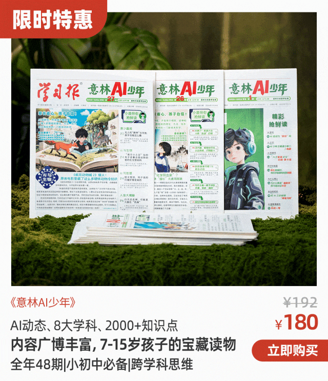 一份意林AI少年报=AI启蒙+活学课本知识+积累学科真题+跨学科思维+科学素养。