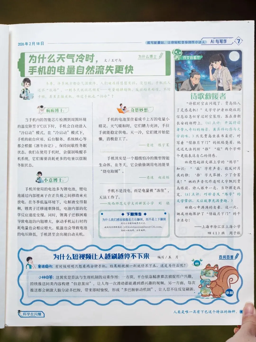 7版是“为什么博士、作文会客厅和百问百答”三大栏目构成的读写加油站。