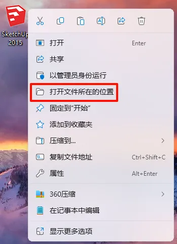 12.右键桌面【SketchUp 2015】图标,选择【打开文件所在位置】