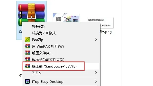 1,将下载好的压缩包鼠标右键选择【解压到 SandboxiePlus\】。