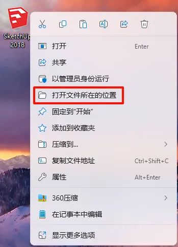 11.右键桌面【SketchUp 2018】图标,选择【打开文件所在位置】