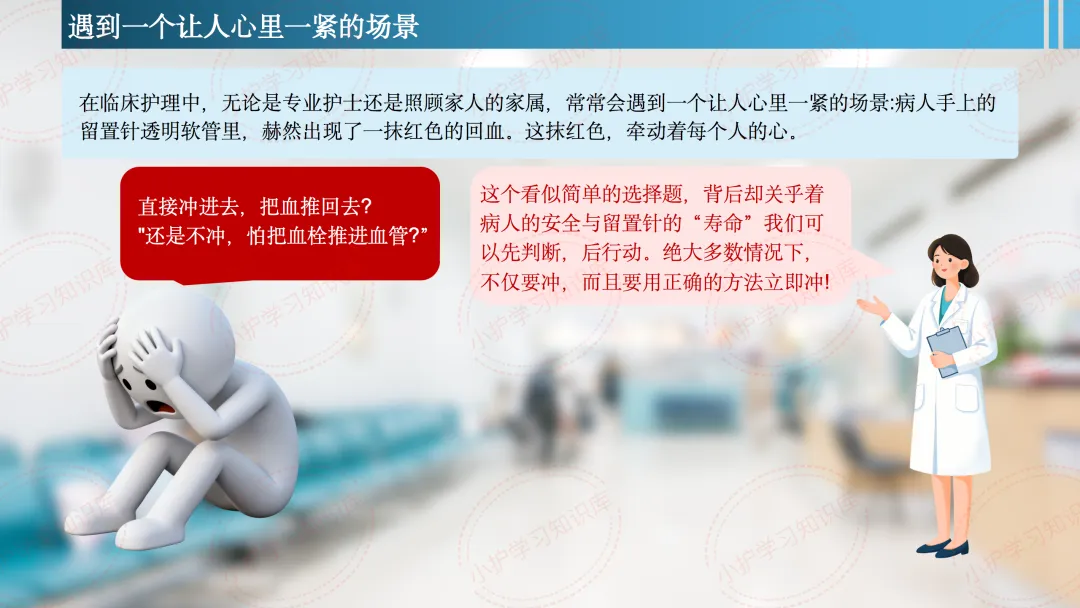 今天,我们来聊聊一个临床护理中几乎每天都会遇到,却常常让人心里一紧的场景:病人手上的留置针透明软管里,赫然出现了一抹红色的回血。这抹红色,牵动着每个人的心。