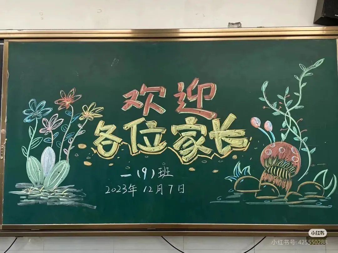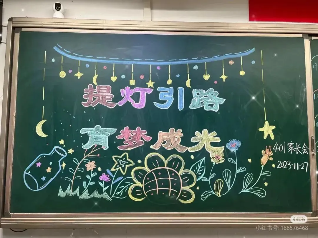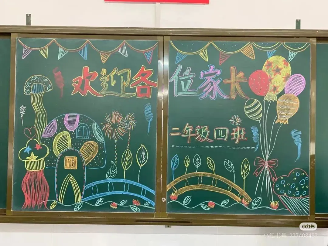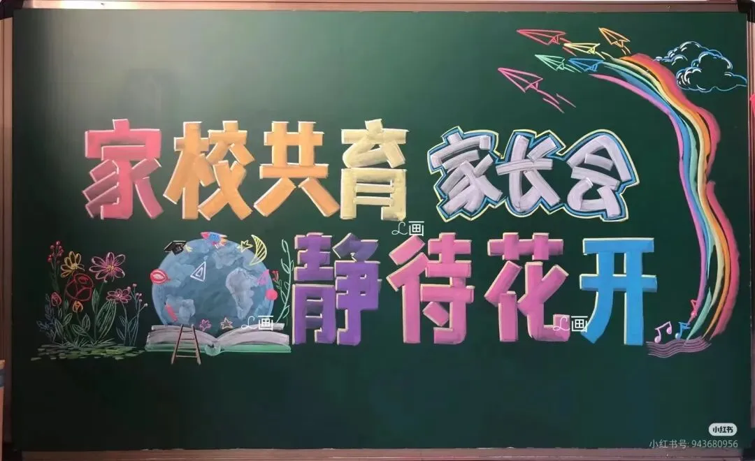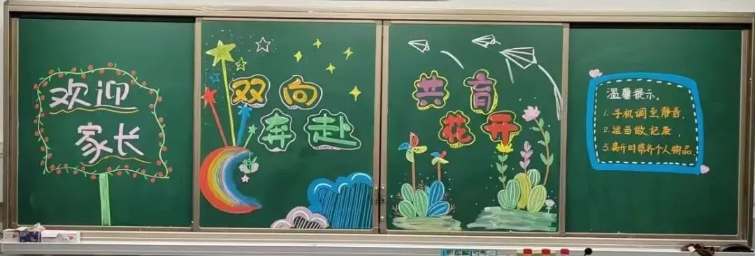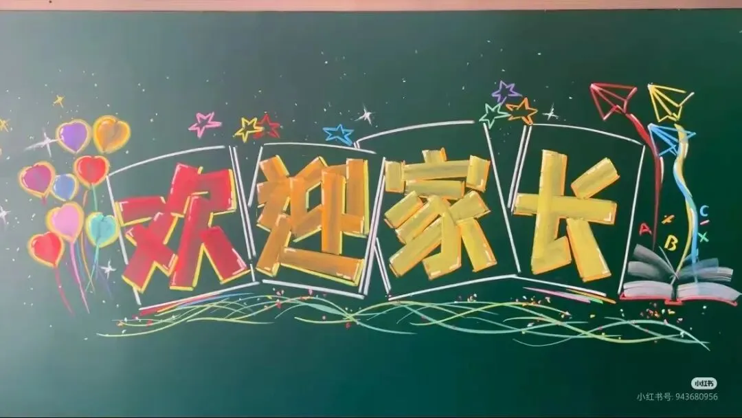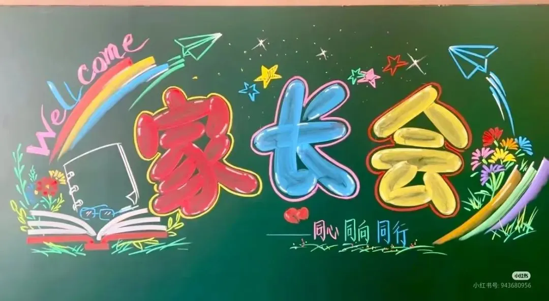 1. 标题区:位于黑板上方约三分之一处,用彩色粉笔将“家长会”三个字写得醒目、大气。可以对字体进行艺术设计,如给字的边缘描上金色线条,或者用彩色粉笔填充字体内部,再用阴影效果突出立体感。在标题两侧,画上一些简单的彩带图案,从标题处向下垂落,增加标题的装饰性。