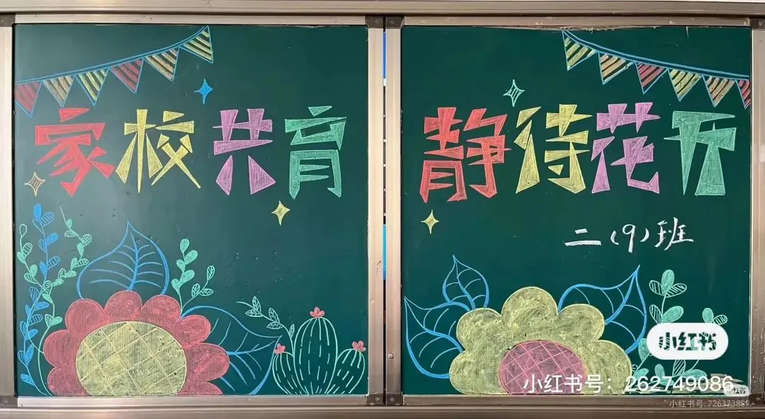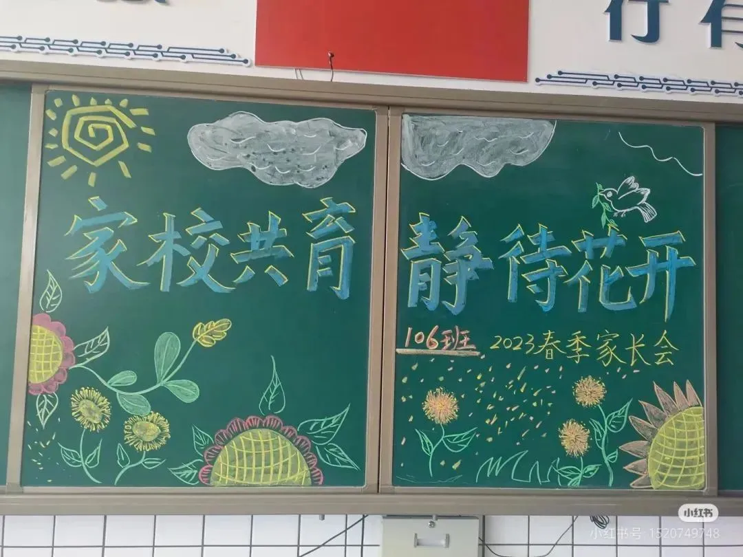1. 主题图案:在黑板上方中心位置,绘制一幅代表家校共育的图案,如老师与学生、家长手牵手围绕着一颗爱心的简笔画,爱心内写上“家长会”三个字,突出主题且寓意三方紧密相连。也可以画一本打开的书,书上跳跃着几个孩子的形象,象征着孩子们在知识的海洋里成长,家长会则是对这一成长过程的关注与支持。