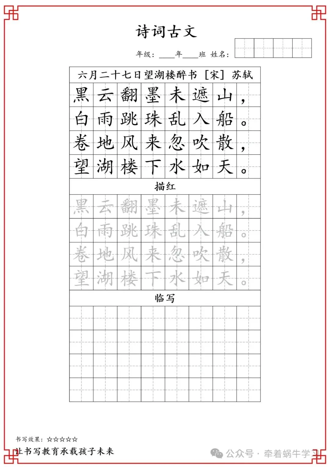 语文1-6年级《古诗词字帖》,一边练字一边背诵古诗,一举两得。因篇幅有限,资料不过多展示。文末有全册电子版领取方法,欢迎下载和打印。