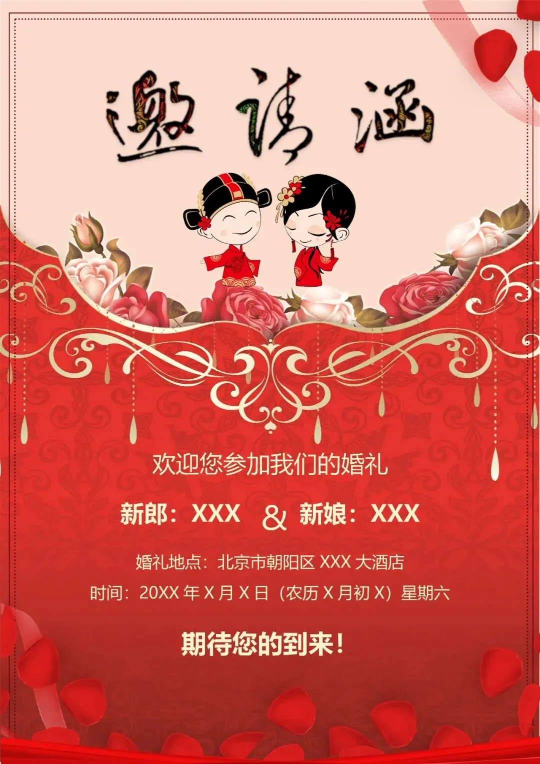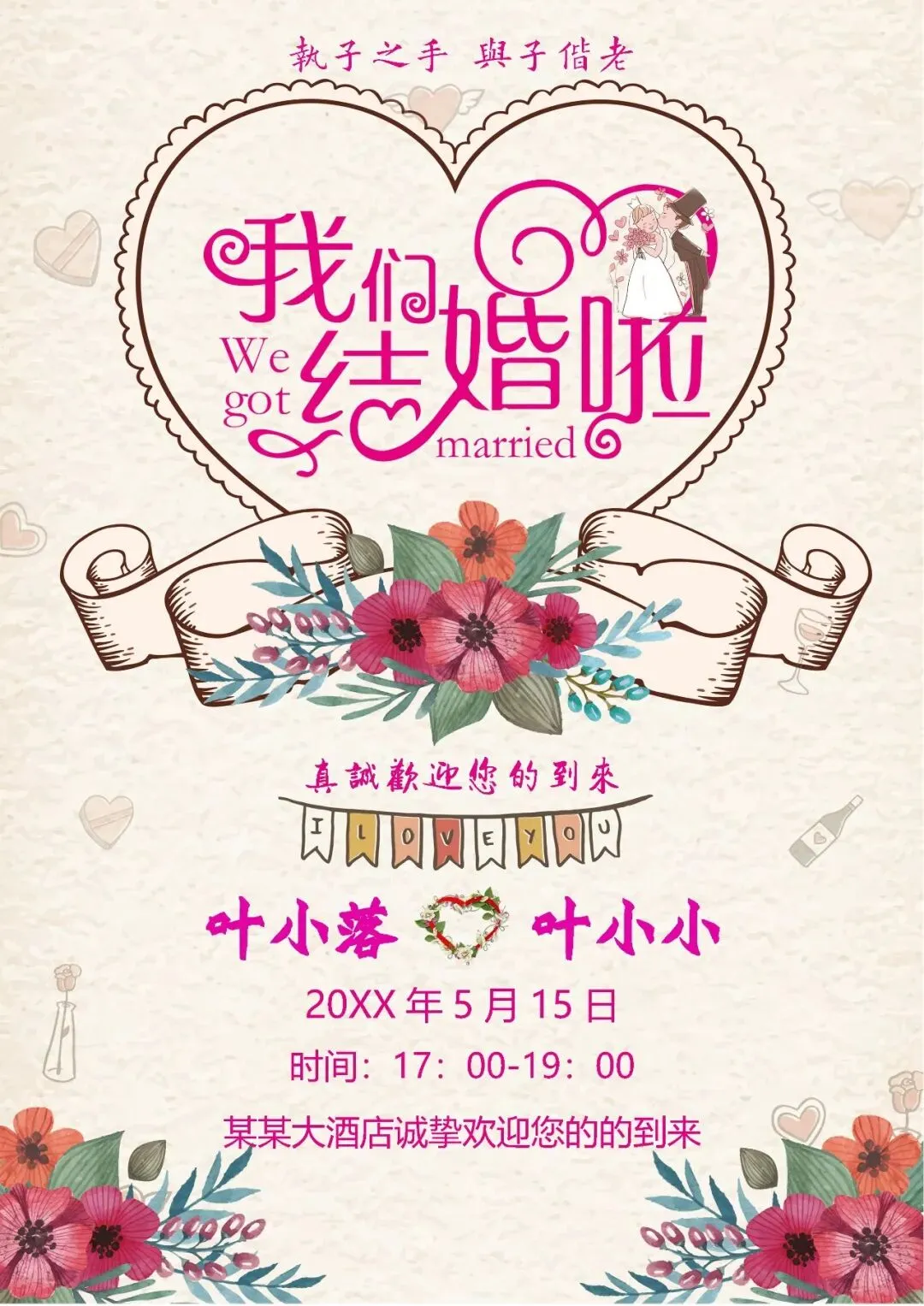 所有模板 支持免费下载、直接编辑文字,助你轻松制作出独一无二的爱情请柬。