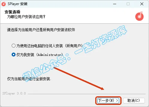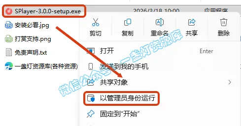 2.打开解压的文件夹,右键【SPlayer-3.0.0-setup】,选择【以管理员身份运行】
