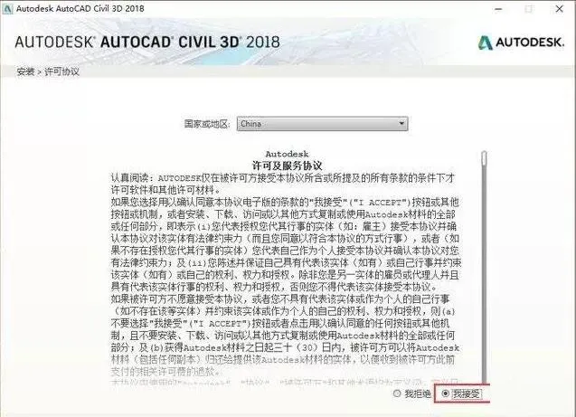 5.选择我接受,点击下一步。