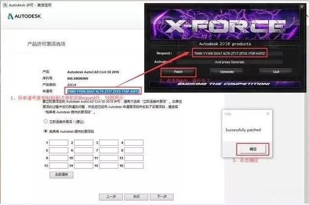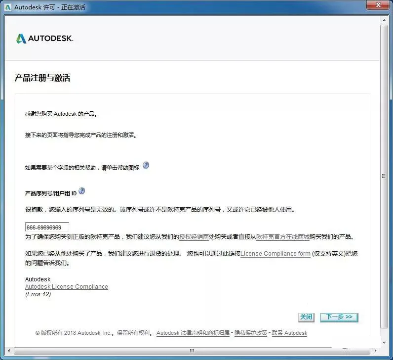 14.点击关闭后会自动回到第11步激活界面,这时重新操作第11、12步即可出现以下窗口,开始下面的破解步骤。
