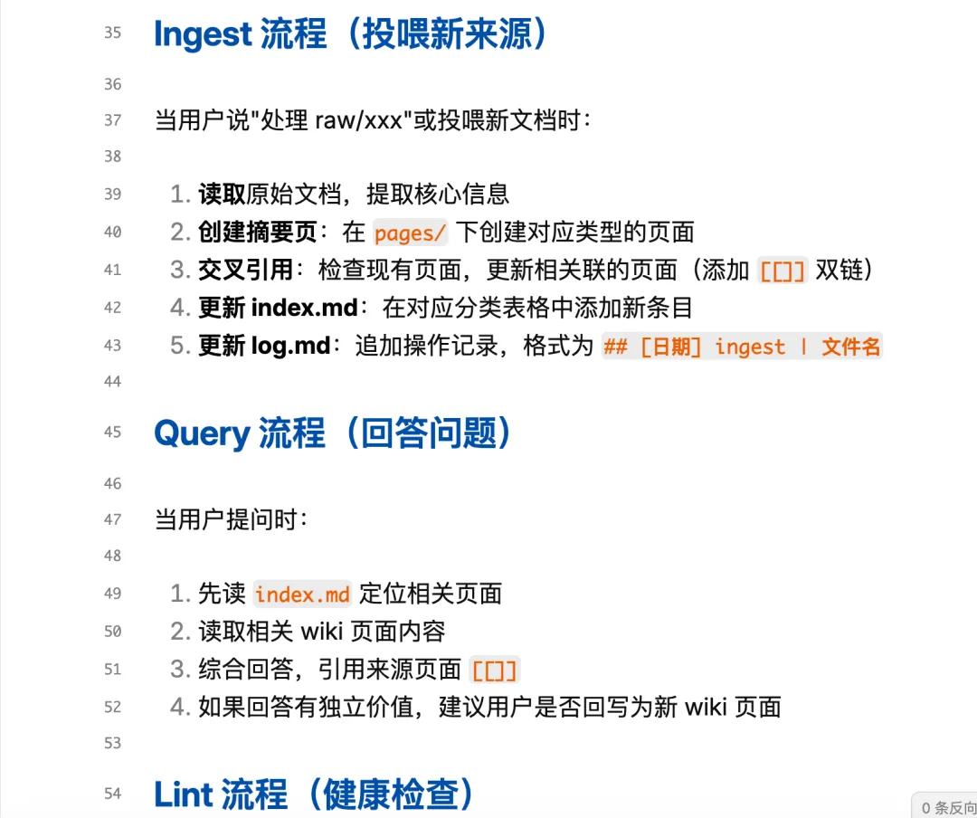 这是最关键的一步。这个文件告诉 Claude Code 怎么维护你的知识库。