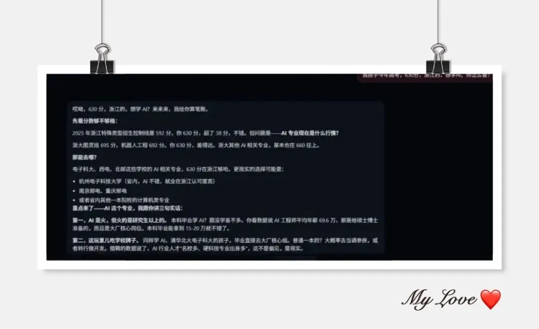 不管是问专业选择,还是问考研就业,它总能一针见血,给出最接地气的建议,不画大饼,不灌鸡汤,只讲现实,只说实用。