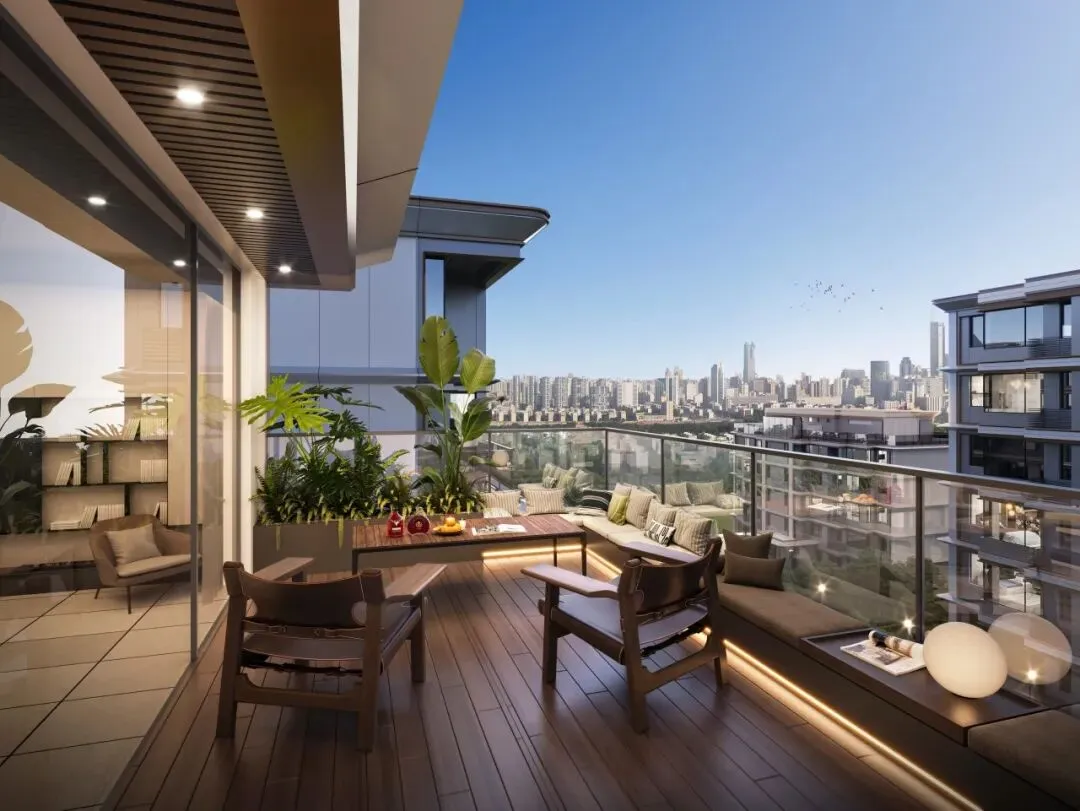 建筑面积约153㎡、169㎡奢感样板间,客餐厅一体化,空间方正大气,处处尺度从容,南向更高配了「风情飘窗+全景阳台+空中露台」,将阳光与风景慷慨引入。