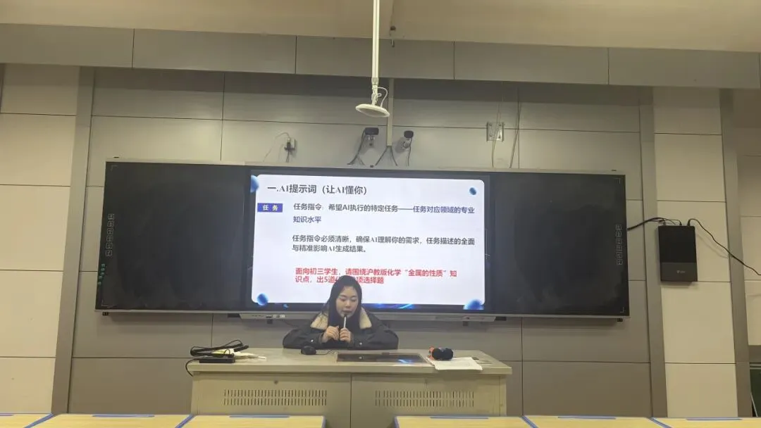 随后,云阳学校束建萍作了《告别“纸上谈兵”:AI如何让化学在课堂上“活”起来》的讲座,我对化学课 “实践落地”的认知彻底跳出了 “实体实验”的局限框架。传统化学课的实践往往受场地、安全、资源等条件束缚,多数时候是 “理论讲完补验证”的被动模式,实践更像知识的 “附属环节”,难以真正落地。