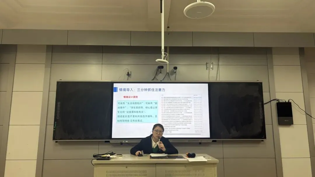 陈钰老师带来《以赛为媒,破课致远——青年教师教学设计的迭代与精进》专题讲座分享,内容兼具理论深度与实践指导性,为在场教师献上了一场干货满满的教学盛宴。 讲座以 “优质课比赛的教学设计逻辑”为切入点,层层深入解析了 “教学目标的精准定位、教学环节的情境串联、教学评价的多元嵌入” 三大核心要点,为青年教师搭建起清晰可落地的教学设计框架。陈老师结合自身参与优质课比赛的真实经历,生动展现了教学设计从 “照搬教材” 到 “锚定课标”、从 “教师主导” 到 “学生主体” 的迭代优化全过程,分享的诸多实操经验兼具可复制性与可推广性。此外,她还精准锚定青年教师专业成长的痛点难点,提出 “课例打磨、同伴互评、专家指导” 的循环提升模式,为教师教学设计能力的持续精进指明了行之有效的路径。