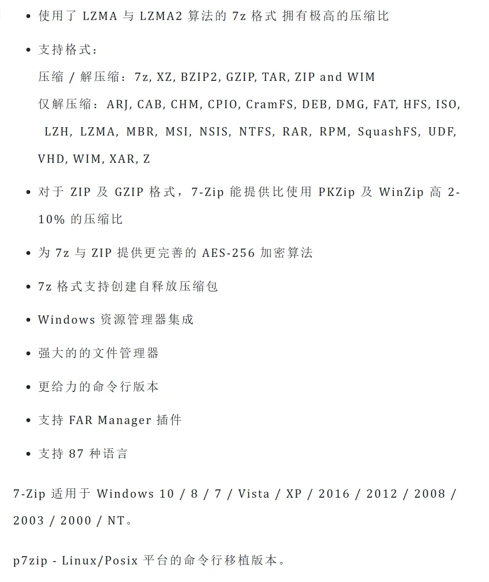 7-Zip 是一款 开源 软件。大多数源代码都基于 GNU LGPL 许可协议下发布。AES 代码基于 BSD 许可下发布。unRAR 代码基于两种许可:GNU LGPL 和 unRAR 限制许可。更多下许可信息请查看:7-Zip 许可。