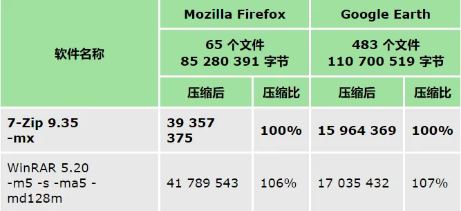 让我们用 7-Zip 和 WinRAR 5.20 进行比较。