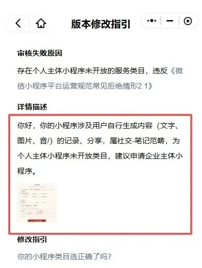 ▲提交版本代码审核时也会有二次审核是否类目选择正确▲