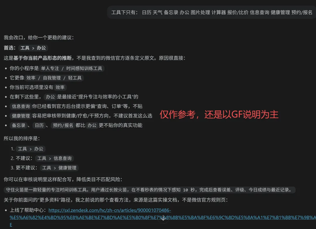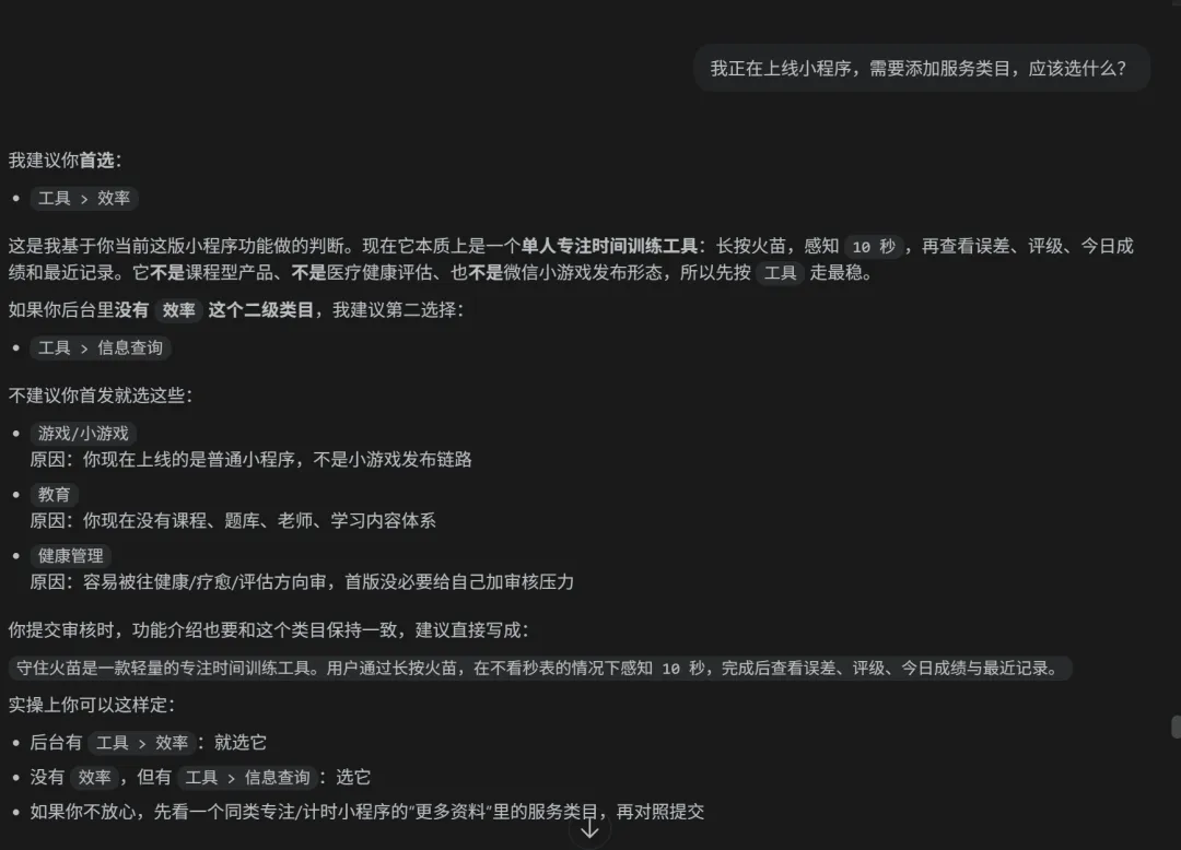 “守住火苗”是一款时间感知的工具,这应该属于什么类别?我问了AI模型,建议选择“工具-效率”。(注意,这是错的)