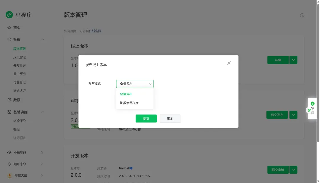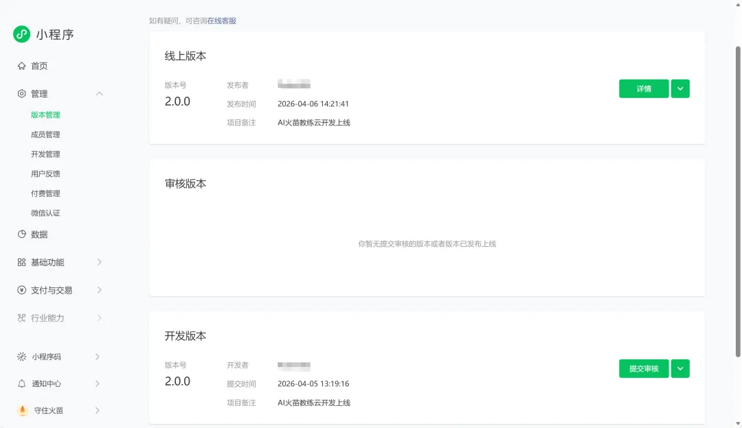 第3步:版本管理(提交代码 → 提交审核 → 审核通过 → 发布)